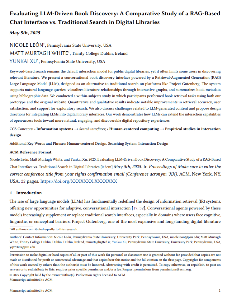 Empirical within-subjects study comparing a RAG-LLM conversational interface vs. the Project Gutenberg website